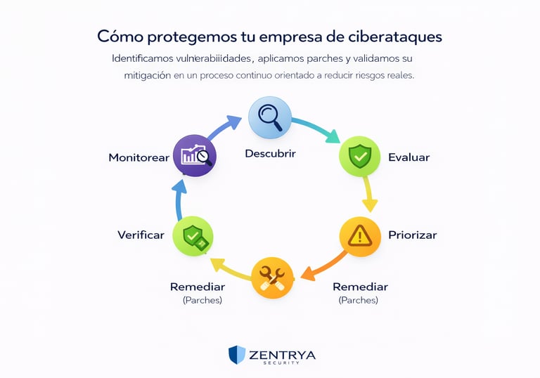 Detectamos, priorizamos y mitigamos vulnerabilidades en tus sistemas mediante un proceso continuo que protege tu operación.